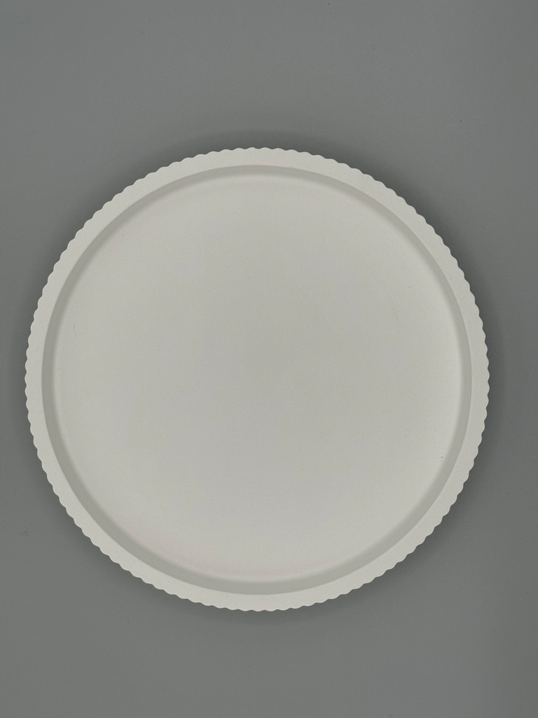 Dieser große, weiße Teller mit geriffeltem Rand ist die perfekte Ergänzung für jede Tischdeko. Der geriffelte Rand verleiht ihm eine elegante Note und macht ihn zum Blickfang auf jedem Tisch. Perfekt für feierliche Anlässe jeder Jahreszeit oder als Teil einer stilvollen Einrichtung.